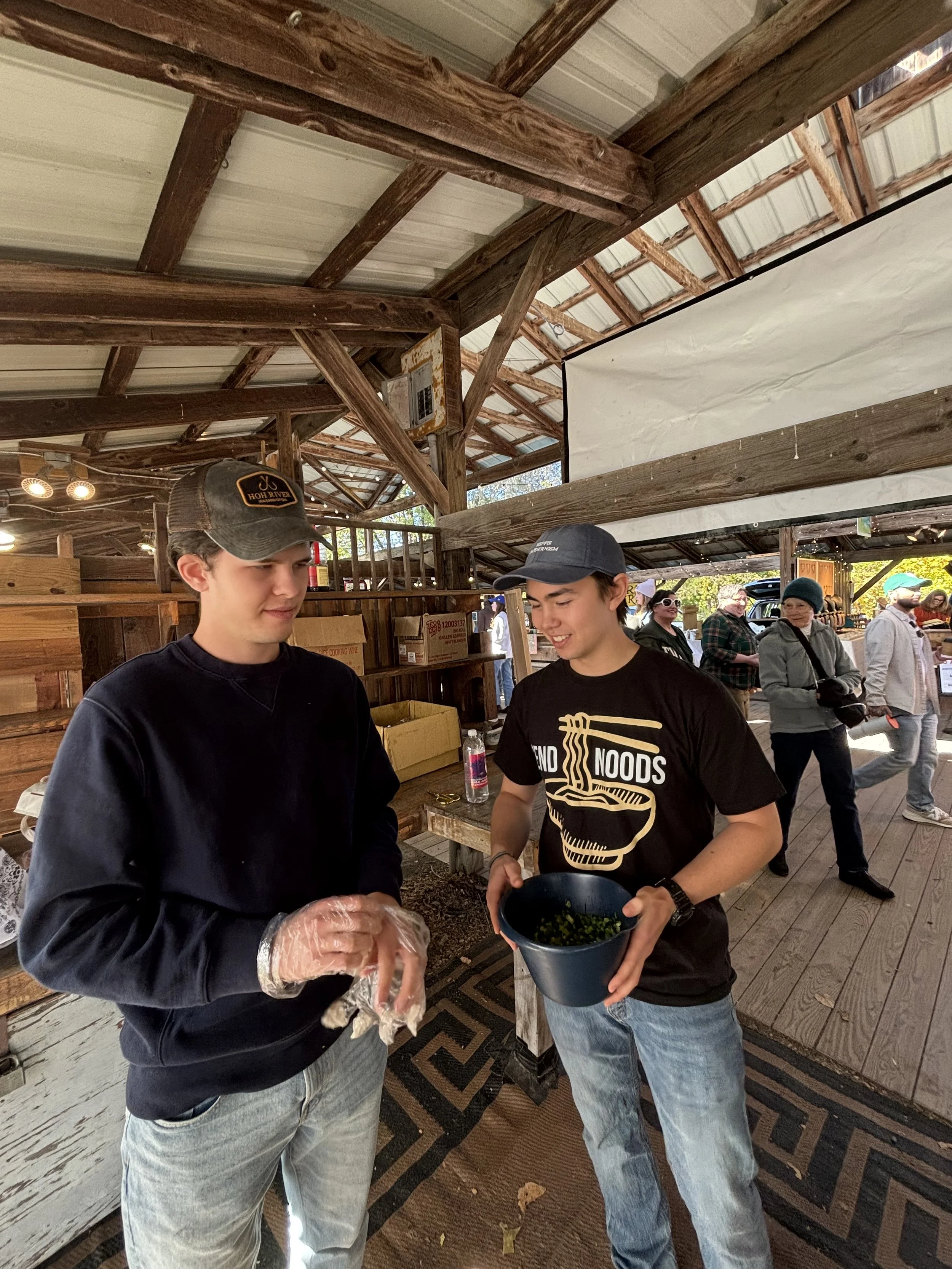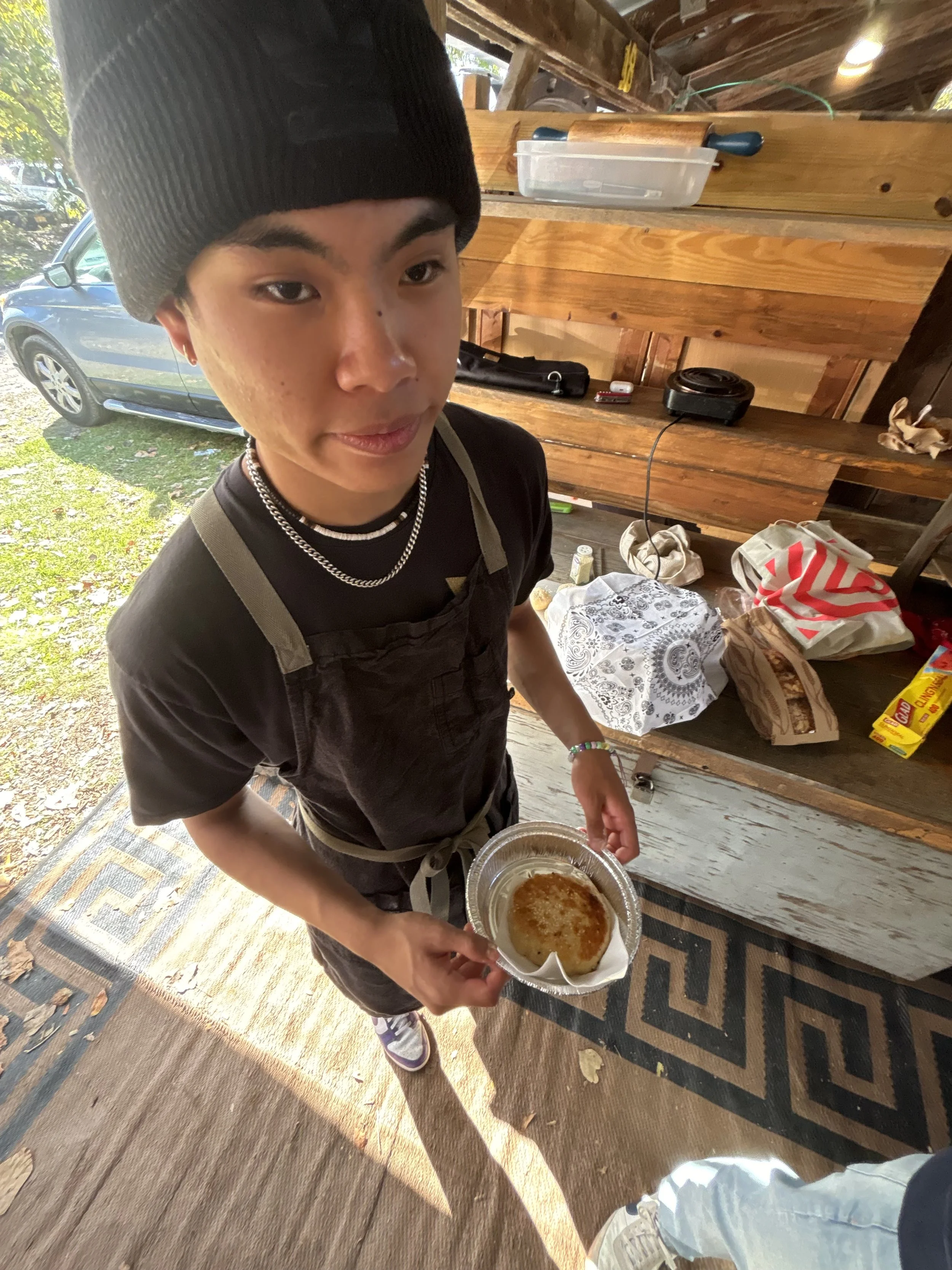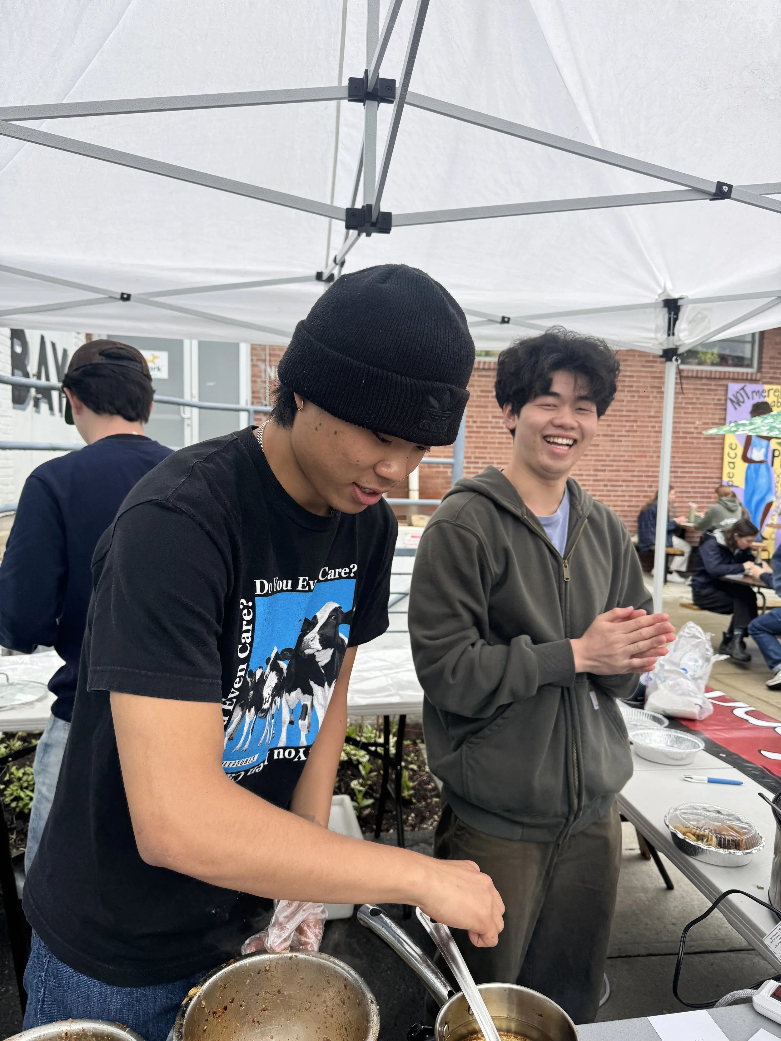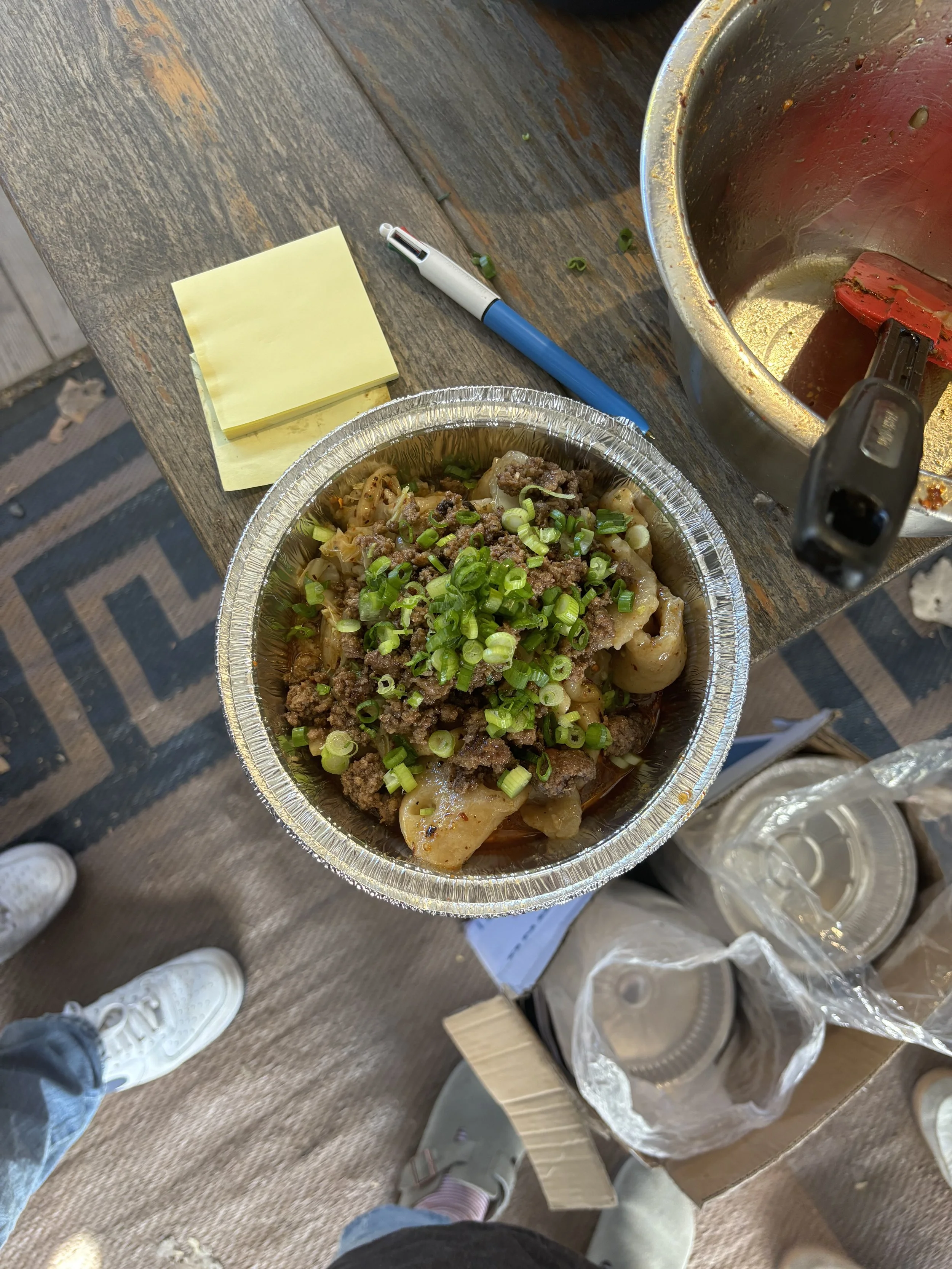 Shout out to these two colonial idiots, Justin and Tomas, I’ve been able to work with Bool Street since Fall 2024. Founded by Yam Hill, Bool Street is a student LLC that mostly operates on Sundays at the Ithaca Farmers’ Market. We specialize in hand pulled Biang Biang noodles. People like to watch us slap the noodles right in front of them and pour the hot oil on top of the chili-garlic that sizzles in a metal bowl.